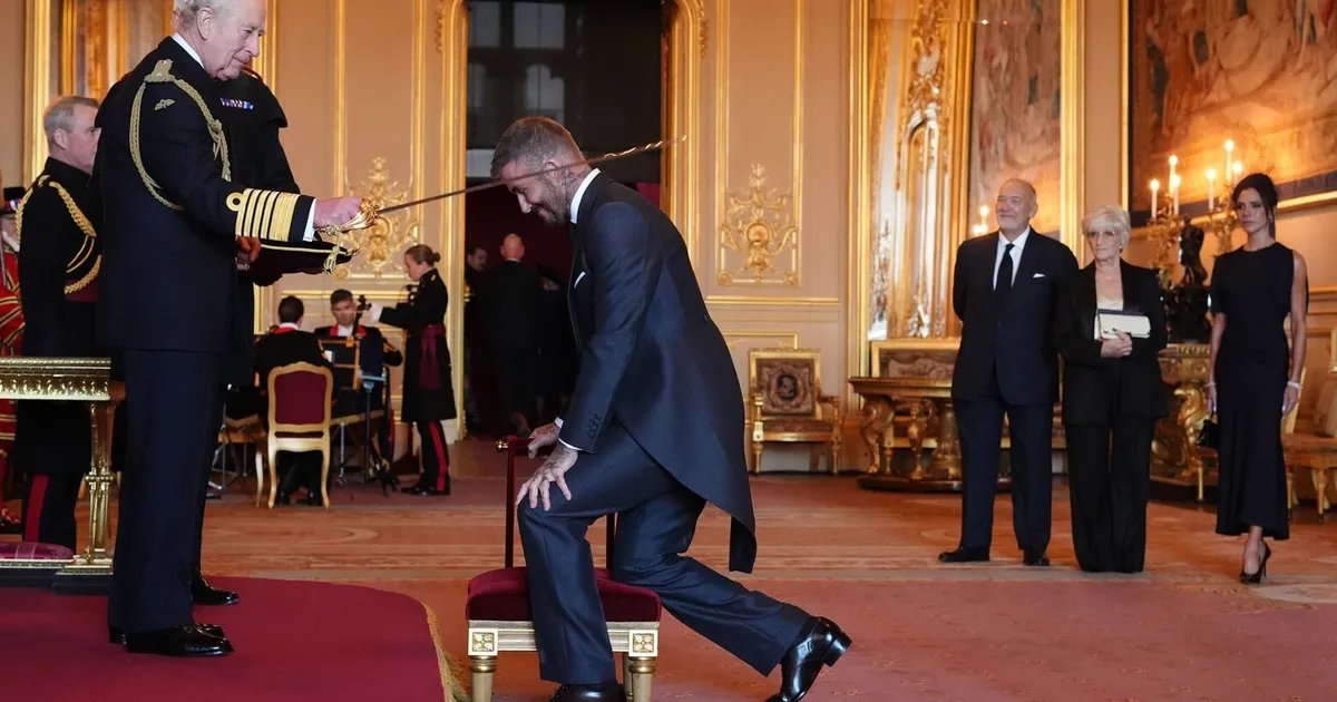 O rei Carlos III bateu em seus ombros com a lâmina de uma espada e “Becks” foi transformado em Sir David Beckham.
