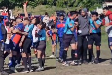 Momento jogador de futebol HEADBUTTS árbitro arrancando os dentes após cartão vermelho