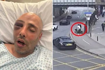 Momento em que o piloto de bicicleta elétrica atropela o pai, 44, deixando-o ‘a horas da morte’