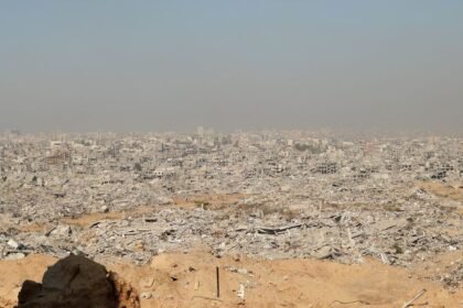 Na minha frente está um prédio que desabou sobre si mesmo, seis andares empilhados uns sobre os outros. Um cão selvagem caminha pelas ruínas, enquanto um drone militar zumbe acima. Ao longe, ouve-se o...